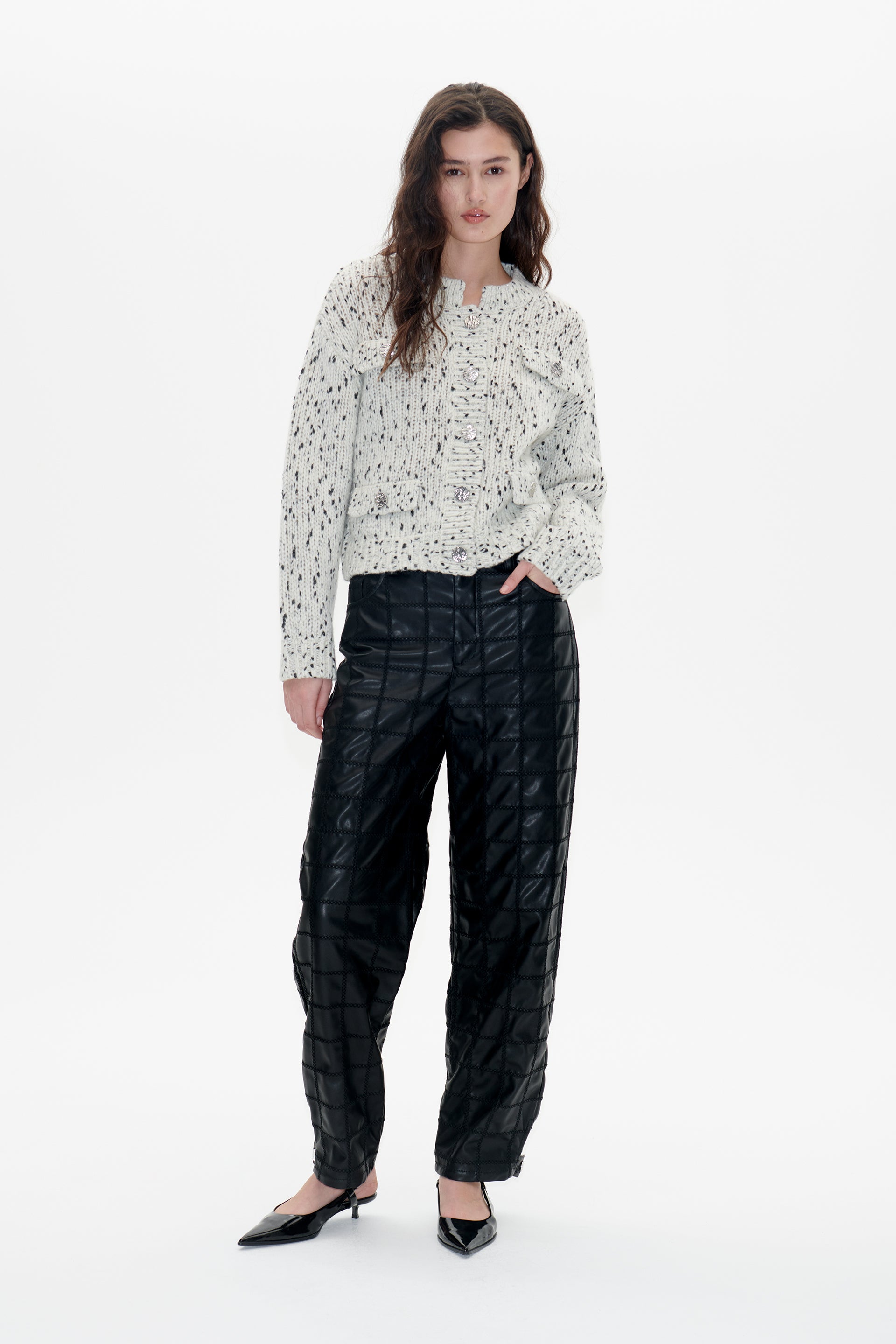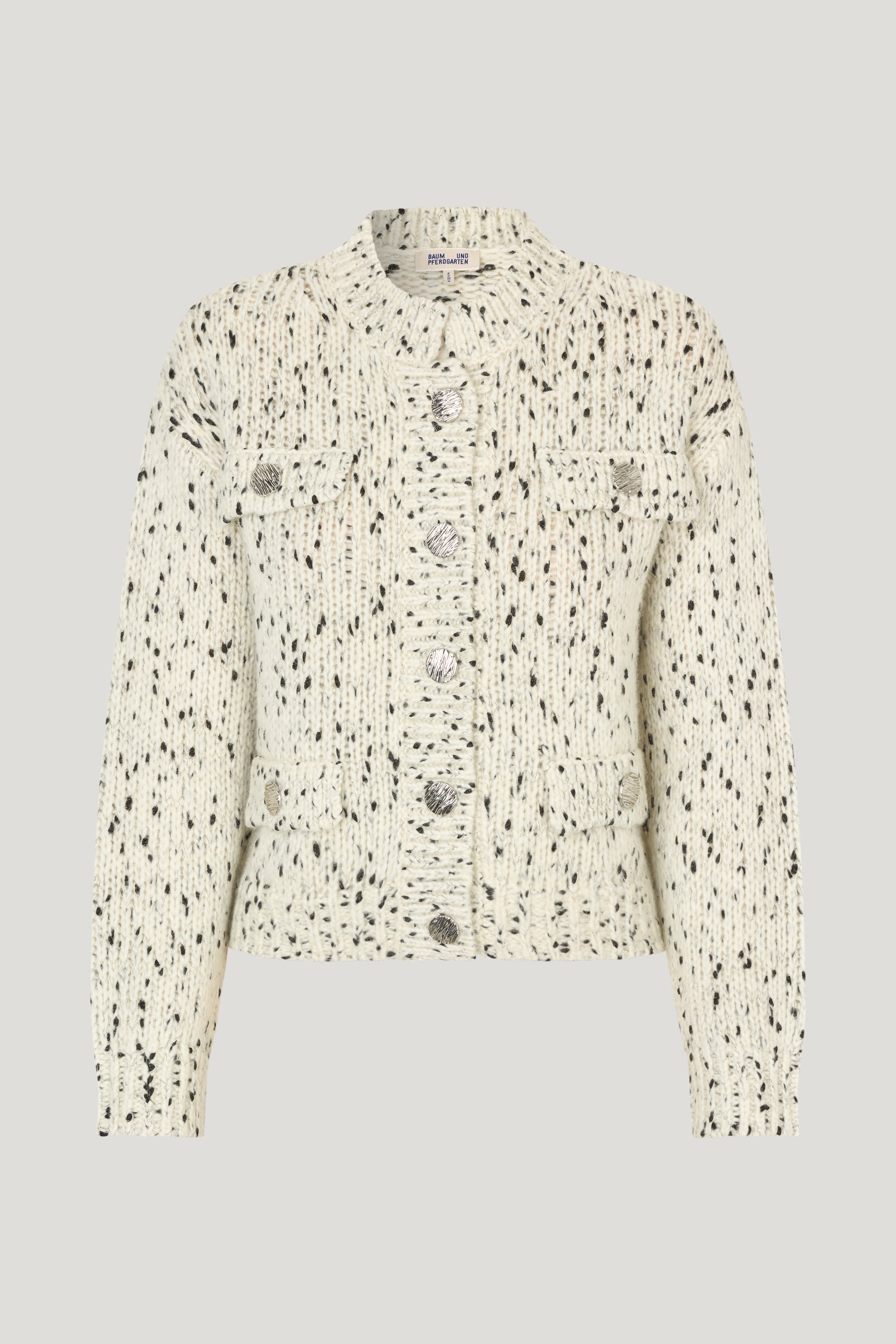Diese dicke Strickjacke hat große Knopfverschlüsse und falsche Taschenklappen auf der Brust, lockere Passform.