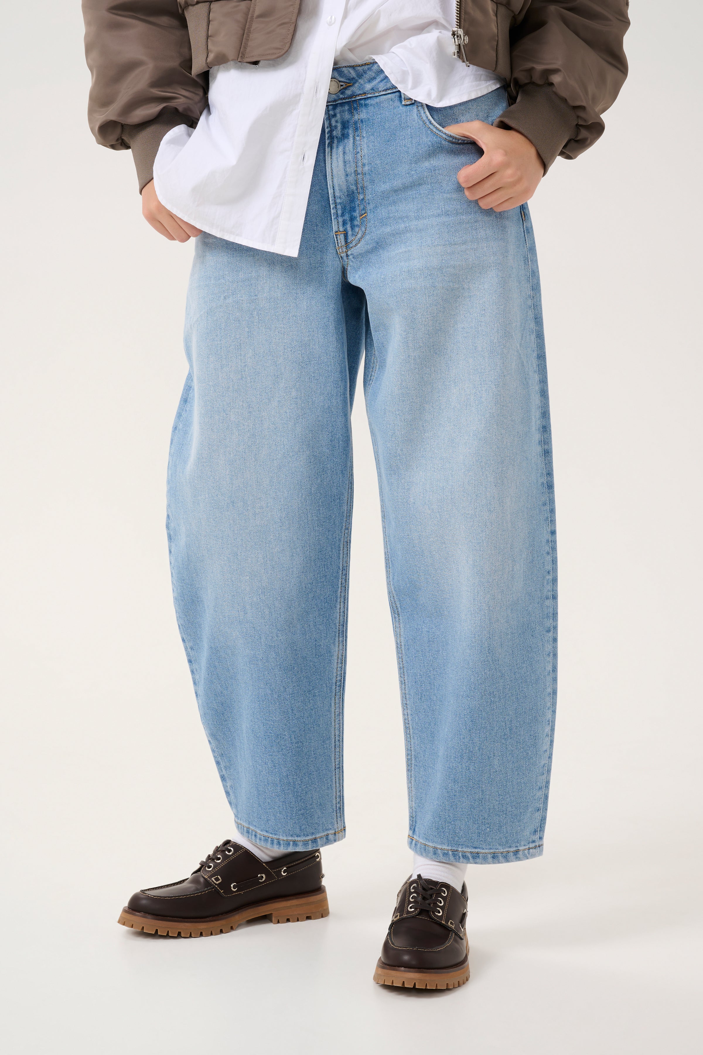 Barrel Fit Jeans mit fünf klassischen Taschen und einer mittelhohen Taille. Diese Jeans hat einen leichten Stretchanteil für mehr Komfort.