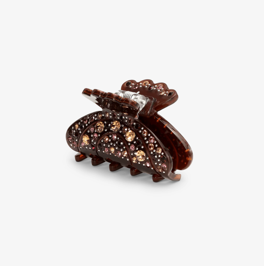 Helen Chocolate Mini ist eine kleine Haarklammer in einem satten, dunklen Braunton, verziert mit funkelnden Strasssteinen in warmen Gold- und Rosatönen. Eine wunderschöne Wahl, wenn Sie Ihrem Look einen zusätzlichen Glanz verleihen möchten – perfekt für den Alltag und besondere Anlässe 🤎