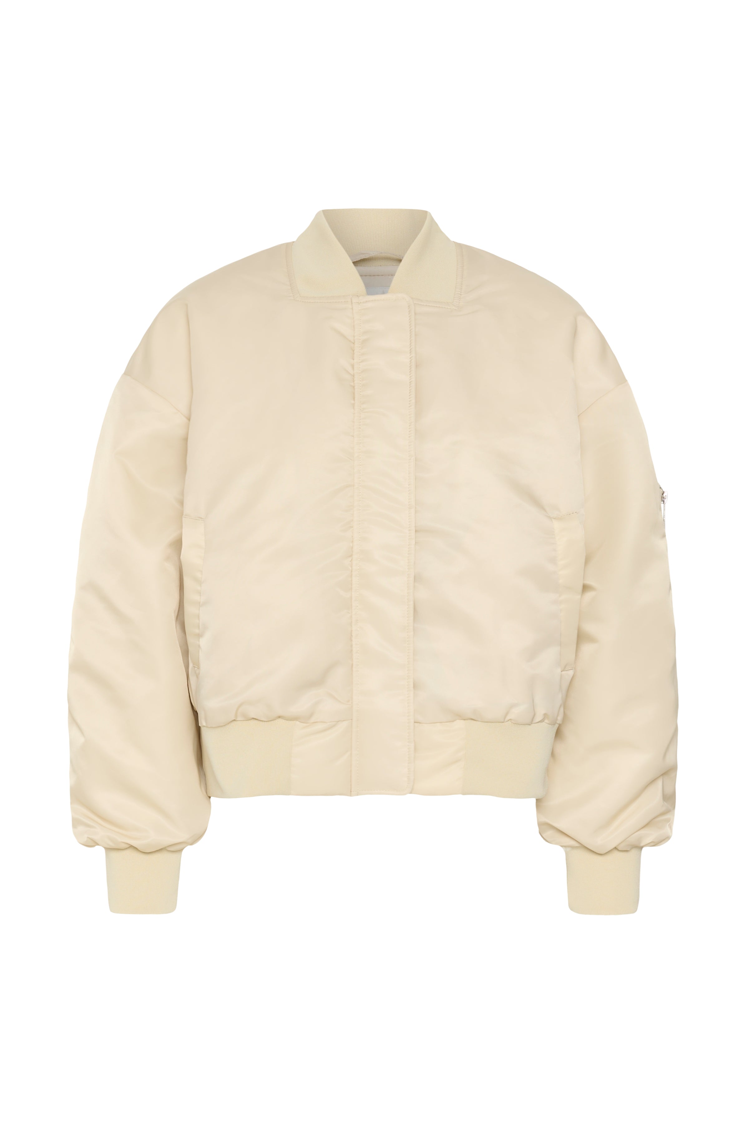 Diese Bomberjacke bietet eine entspannte Passform und eine kurze Silhouette. Rippdetails und verdeckter Verschluss sorgen für Komfort und modernen Stil