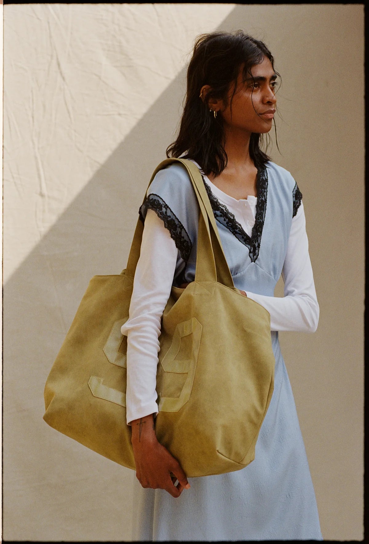 Die Tasche Keo ist aus weichem Wildlederimitat gefertigt. Die geräumige Tasche hat ein großes Fach mit einer kleinen Tasche auf der Innenseite. Nummern aus Lederimitat befinden sich auf der Vorderseite und ein gesticktes Logo auf der Rückseite.