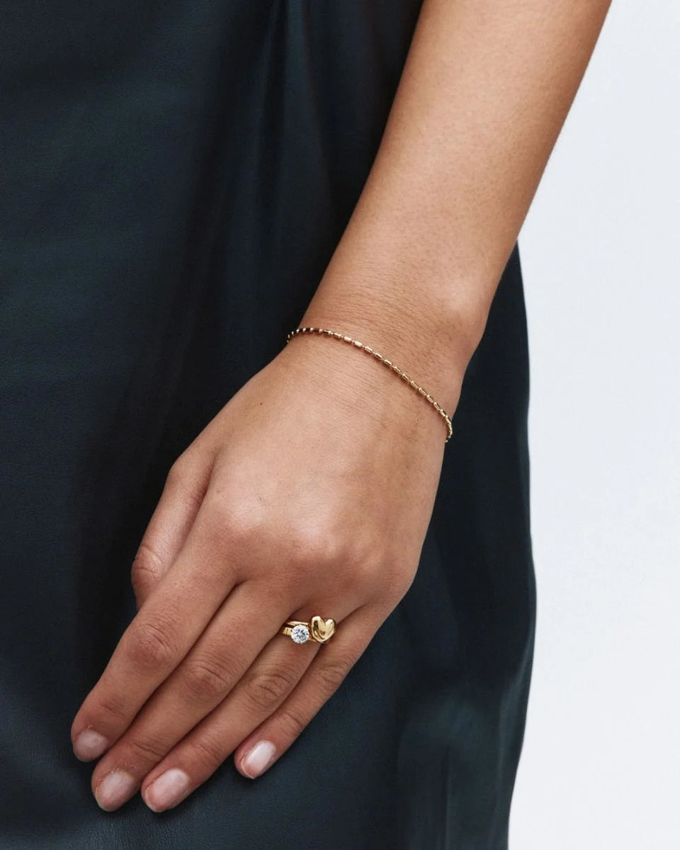 Die charmante Seed Bead ist die perfekte Kette für Layering. Ihre rechteckigen Metallformen fangen das Licht ein und verleihen deinem Look Glanz – ganz ohne funkelnde Steine. Das Armband in 14-karätiger Vergoldung ist solo ein echter Blickfang und lässt sich auch perfekt mit anderen Lieblingsketten für einen entspannt eleganten Look kombinieren