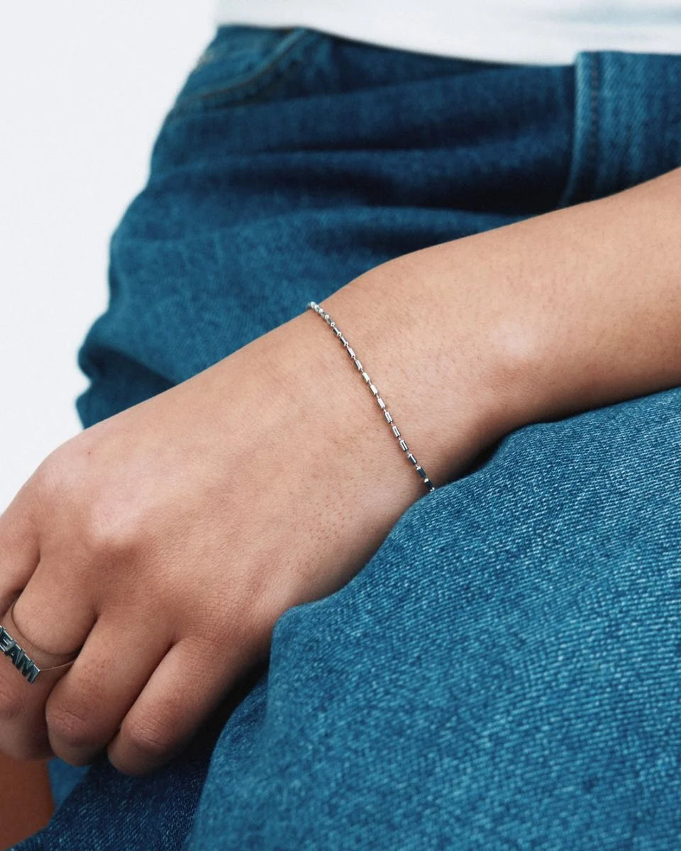 Die charmante Seed Bead ist die perfekte Kette für Layering. Ihre rechteckigen Metallformen fangen das Licht ein und verleihen deinem Look Glanz – ganz ohne funkelnde Steine. Das Armband aus glänzendem Edelstahl ist solo wunderschön zu tragen oder lässt sich mit anderen Lieblingsketten für einen entspannt eleganten Look kombiniere