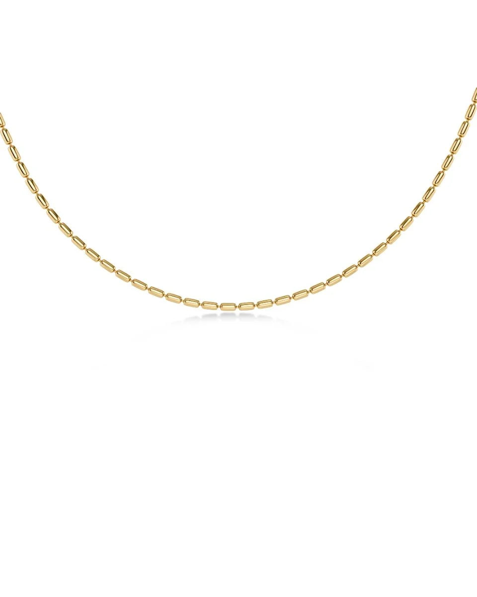 Die charmante Seed Bead ist die perfekte Kette für Layering. Ihre rechteckigen Metallformen fangen das Licht ein und verleihen deinem Look Glanz – ganz ohne funkelnde Steine. Die Halskette in 14-karätiger Vergoldung ist solo ein stilvoller Hingucker und lässt sich wunderbar mit anderen Lieblingsketten kombinieren – für einen entspannt eleganten Look