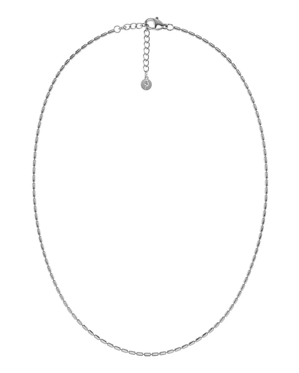 Die charmante Seed Bead ist die perfekte Kette für Layering. Ihre rechteckigen Metallformen fangen das Licht ein und verleihen deinem Look Glanz – ganz ohne funkelnde Steine. Die Halskette aus glänzendem Edelstahl ist solo ein eleganter Hingucker und lässt sich auch wunderbar mit anderen Lieblingsketten für einen entspannt stilvollen Look kombinieren