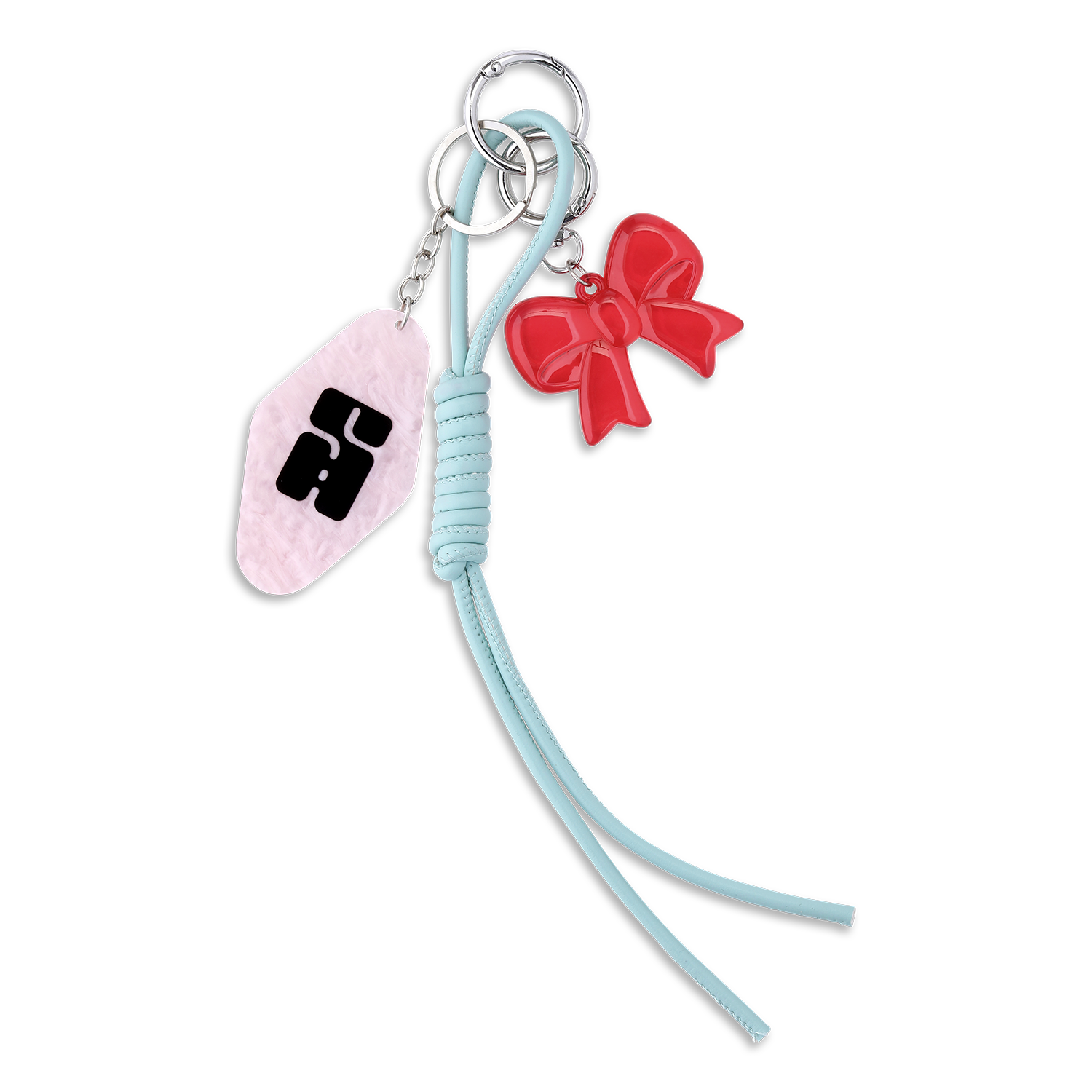 SA Soft Surf Bag Charm in Bubblegum ist ein Taschenaccessoire mit gewellter Form, rosa Farbe und glänzendem Finish.