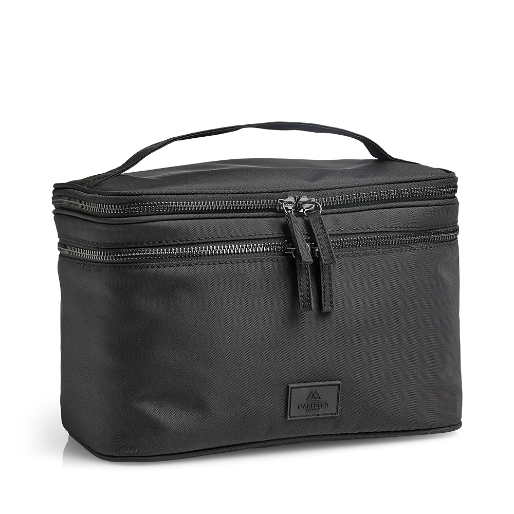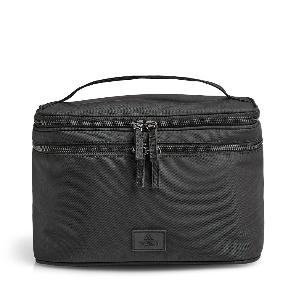 Hergestellt aus 100 % veganen Materialien, wasserabweisend, robustes Material, zwei separate Reißverschlussfächer